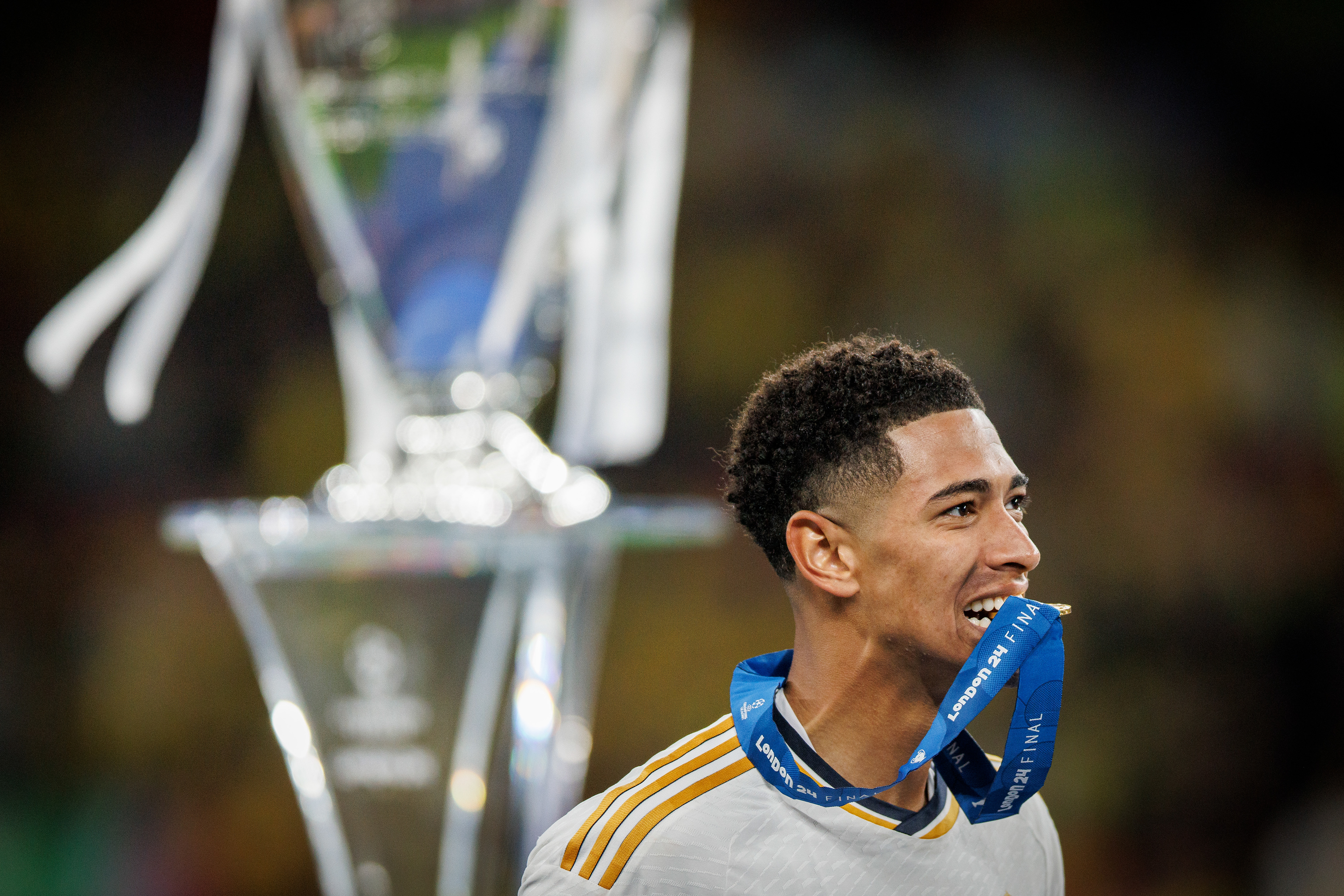 Jude Bellingham of Real Madrid in action during the UEFA Champions League quarter-final